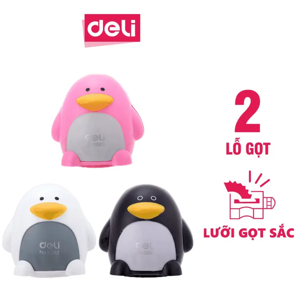 Gọt bút chì DELI E0563 – hình chim cánh cụt, 2 lỗ Gọt